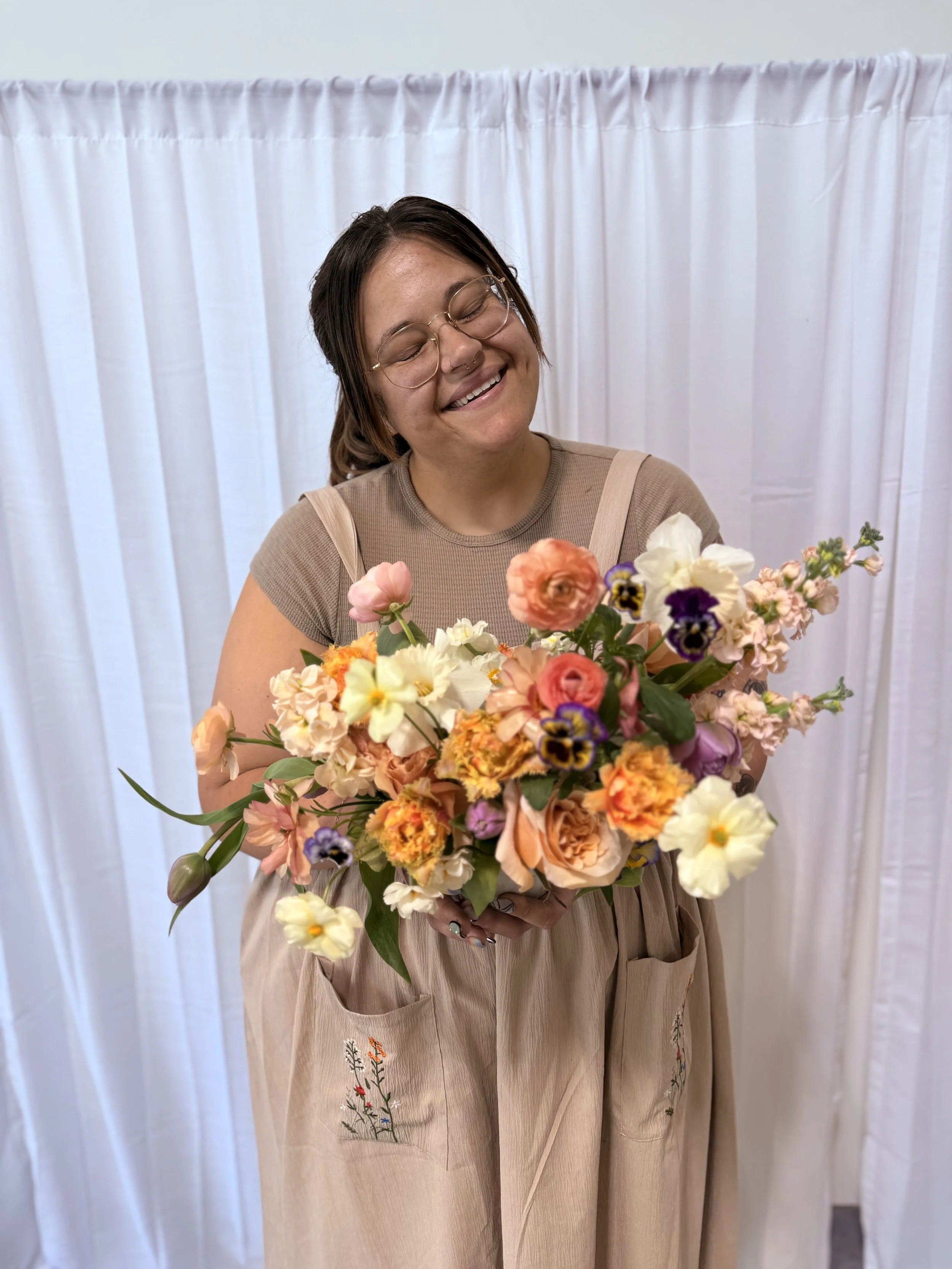 Heather (she/they) is our logistics and design champion, making sure that everything in your head is depicted and created through florals! She loves Chappell Roan and Doechii, is our resident crafty girl, and loves to pick up new hobbies when she can! Our favorite Pisces, her Dutch Bros order is a Cocomo Nitro Cold Brew, and her favorite flower is a pansy!
